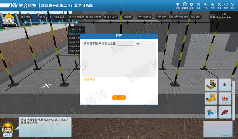是基于BIM技術(shù)、虛擬仿真等技術(shù)開發(fā)的建筑腳手架實訓系統(tǒng)。